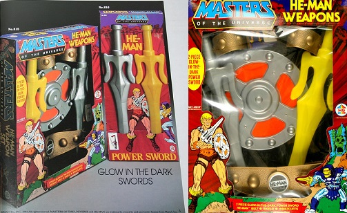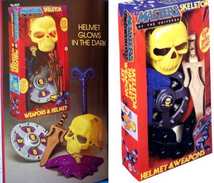 We never got the Skeletor set because the sword was reverse moulded and looked like a cookie cutter to me. Later on my friend got a light up yellow power sword set that came with a blue shield.