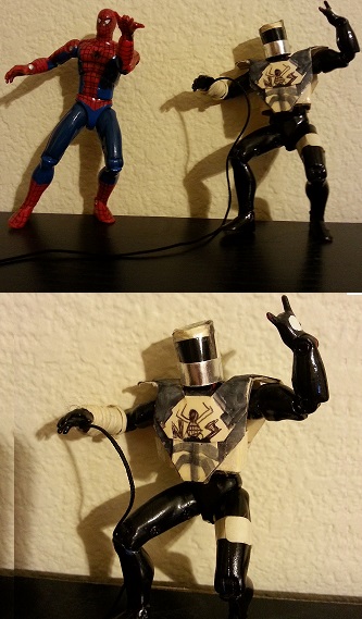 Also part of this wave of figures was my greatest prize, a Black Costume Spider-Man. For several years I had to settle for a custom version I made by painting a Marvel Super Heroes multi-articulated Spider-Man black. Though I had to cover up my shoddy workmanship by constructing paper armor and turning him into the original "Iron-Spider", but back to the official release. I stalked the toy aisles of my local Target for the entire summer of 1995 trying to get my hands on this one. I went so far as to show up every day at store opening for a week straight to learn when their stocking day was. But finally one morning, there it was in the peg, ready to be bought for $4.99.