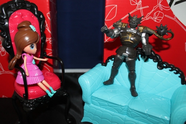 Knight walks out in charge, ready to fight! Instead of sitting, he simply stands on the couch.