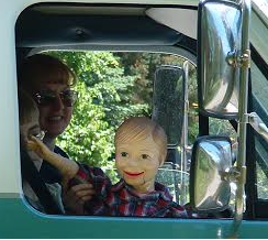 Aunt Bea, who was the ambulance driver for the volunteer Benson Fire Department, had been asked to drive the ambulance down the road for the parade. She asked me to sit in the front seat and hold Bob, her ventriloquist dummy, waving to the crowds.