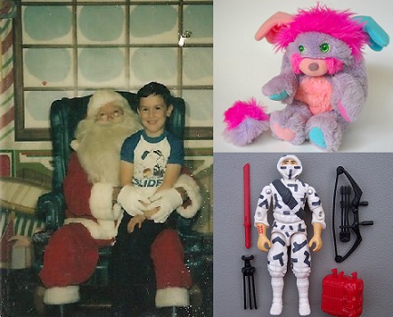me up there smiling with Santa, having just told him how badly I needed some Popples or at the very least a Storm Shadow G.I. Joe figure (yeah, I was all over