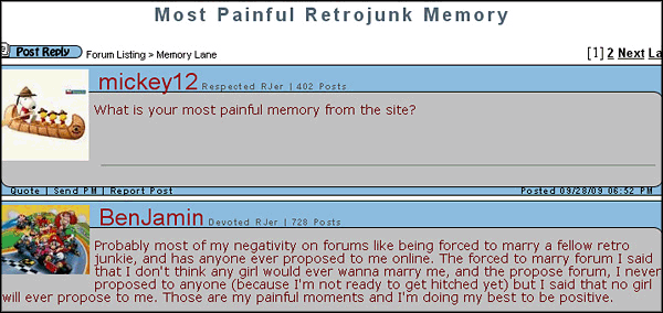 This article has taken me so long to process, such great memories. Glad I got on the Retrojunk Train during the Golden era, it was such a fun and sometimes awkward community to be a part of. I had never been "involved" in the Internet before, but supportive folks like vkimo, Cosgrove and good old' Caps 2.0 made me want to stick around. Even Dalmationlover, who irritated me in the best way possible, he was like my annoying online kid brother.