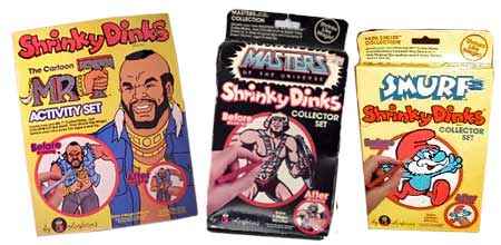 There were TV and movie tie-in Shrinky Dinks, as well as arcade and toy store salutes. To name just a few: Star Wars, Pac-Man, Smurfs, Cabbage Patch Kids, Barbie, Power Rangers, and Mr. T (it’s a delirious power trip to actually be able to shrink Mr. T, by the way).