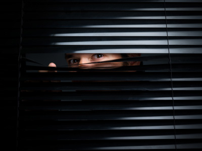 I definitely shared your fear of blinds (and still do). I hate the idea of somebody out in the dark being able to plainly view me in the light. So I typically try to turn off any lights at night in rooms that aren't being used.