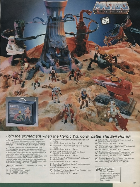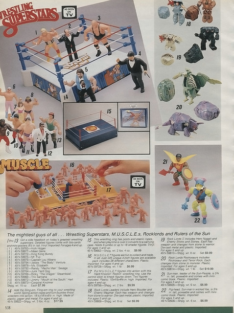 It was crazy to realize that from the Nintendo page on down, I had at least one item featured on every page at some point in my youth. Now most of it came second hand from garage sales as opposed to Christmas morning, but I totally played with most everything featured. My favorite was definitely the WWF toys, owning that ring was a dream come true. I love that there was a generic carrying case for the Masters of the Universe figures, like Sears wouldn't splurge to carry the official one.