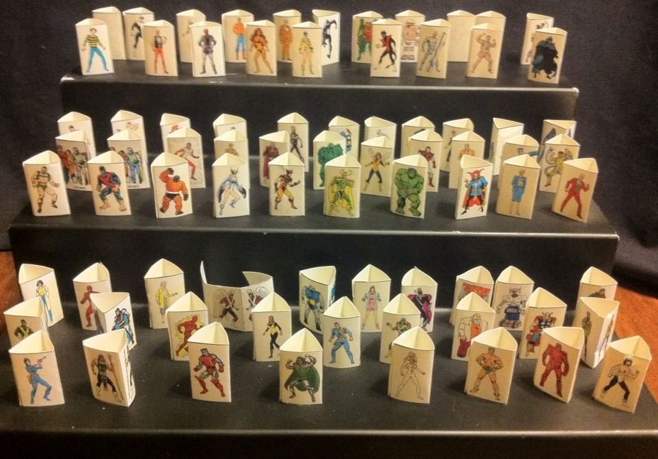 The set included a map of New York City showing bases for different teams. There were fold up figures made of paper featuring the heroes and villains. There were also metallic figures but I never got any.