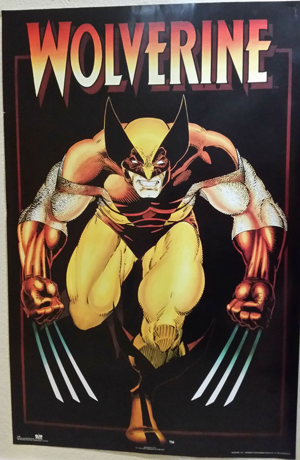 Now if you came in my room in the late '80s you would know instantly what my interests were by the posters on my wall. Among the various bikini-clad supermodel posters, snarling tiger posters that I won at a fair, and WWII fighter planes, was of course my favorite Marvel Superhero. I had two posters actually. This one with Wolverine tearing though with his claws by Dave Cockrum.