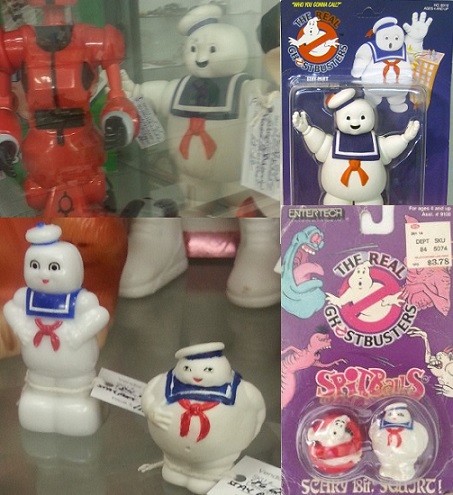 I came across not 1, not 2, but 3 different versions of the Stay-Puft Marshmallow Man from the Ghostbusters universe. The first was the totally out of scale, but beautifully sculpted figure from The Real Ghostbusters cartoon toy line by Kenner which was a much coveted item in my youth that I never owned.