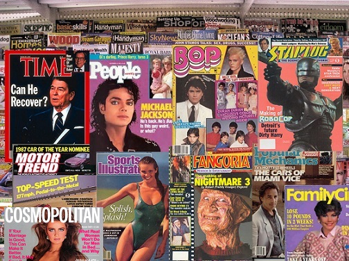 Perusing the magazine rack is always a good way to get a feeling for the decade. TIME and People let us know that Ronald Reagan is on the way out, while Michael Jackson has gone Bad with a new look. The swimsuit issue of Sport Illustrated was always an annual tradition, but not quite as exciting as an issue of Starlog featuring Robocop or Fangoria with everybody's favorite teen terrorizer, Freddy Krueger. We'll just ignore Popular Mechanics and Family Circle, as those magazines are for uncool parent types. Oh, look CANDY!