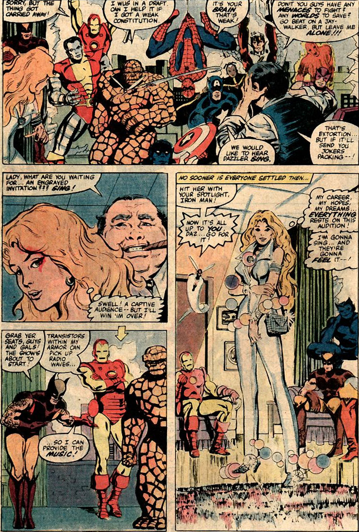 Alison Blaire the Dazzler still not part of the team interrupts training with a phone call.