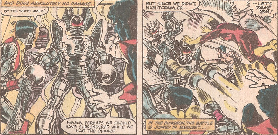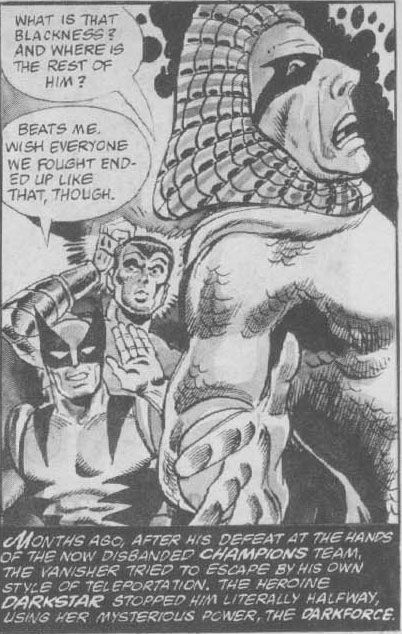 Wolverine is shown twice more in his old costume which either puts this story way earlier or is an error as Wolverine's new costume was still fairly new. The rest of the story deals with Nightcrawler on a solo adventure being transported to another dimension with the Vanisher.