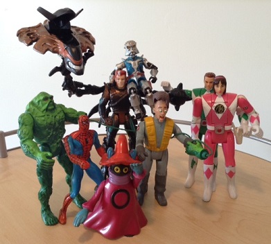 Hey look, everybody's getting together for a group photo. Looks like a regular Figure Fest over there. I love it when a team comes together on my toy shelf. So which of these did you guys own? Any elusive figure your still trying to add to your nostalgia filled toy chest?