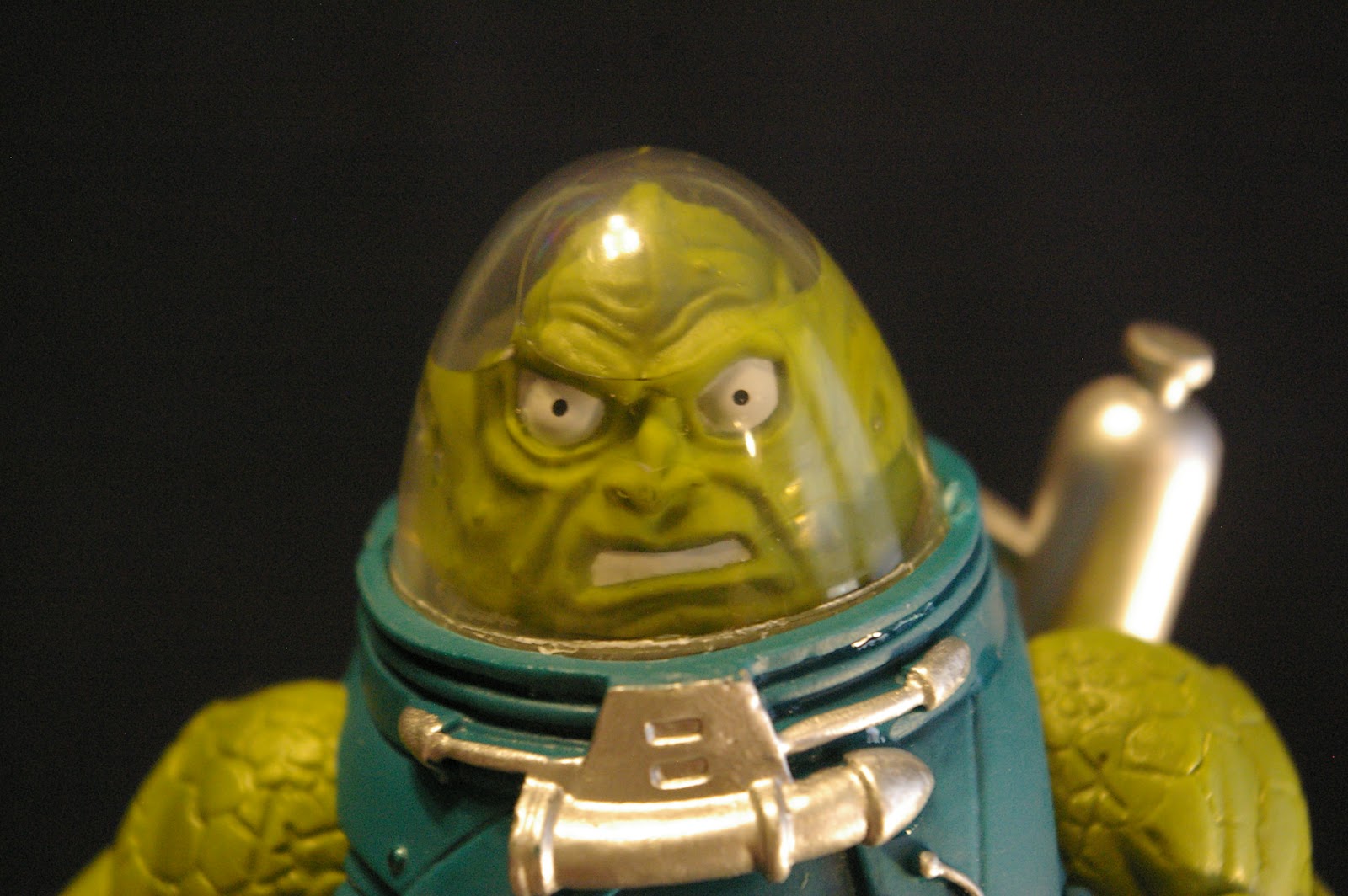 Evil-Lyn turned around just in time to catch hot lead to the side of her yellow face.