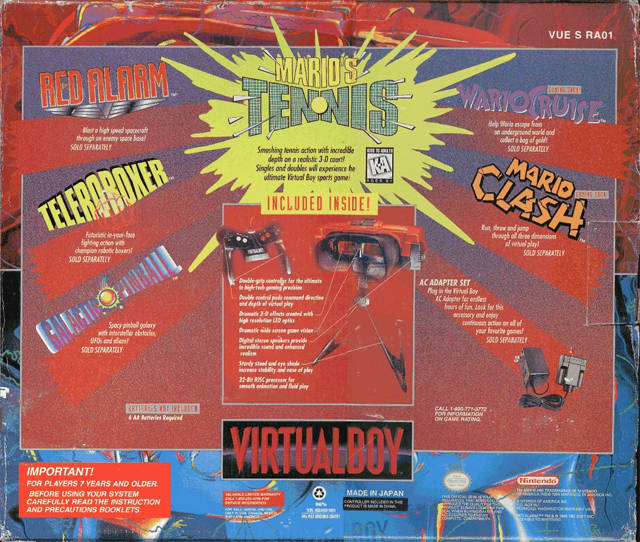 After a sleepless night, we rolled to Toys"R"Us to claim my rightful inheritance. Running down into my room, I flipped the box that held the Virtual Boy on its back and scoped out the art.
