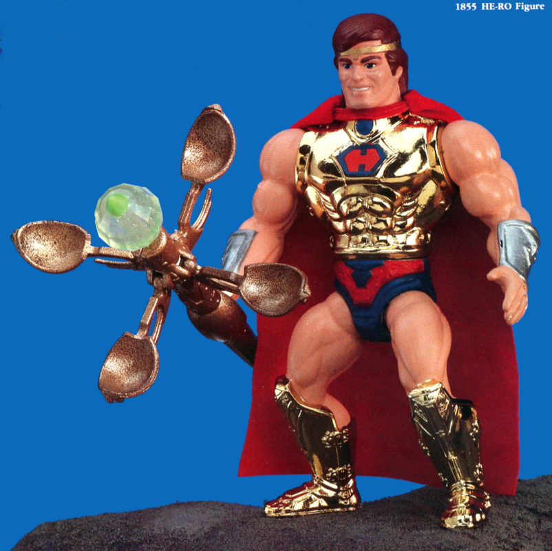 Figuring that the cartoon would be developing the characters (of which there would be action figures) if both were ever produced, He-Ro would turn out to be the son (albeit adopted) of King Adam (He-Man).