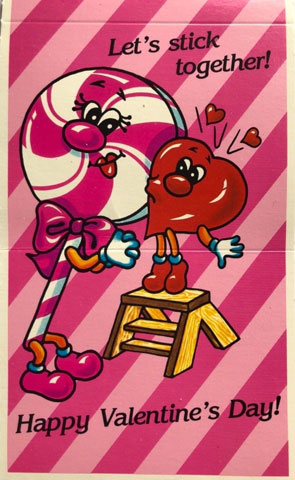 The candy was always the same, starting with the classic Necco Sweetheart conversation hearts poured into the little envelopes that came with the Valentine or in a box with a "to" and "from" on it that served as the Valentine itself.
