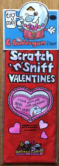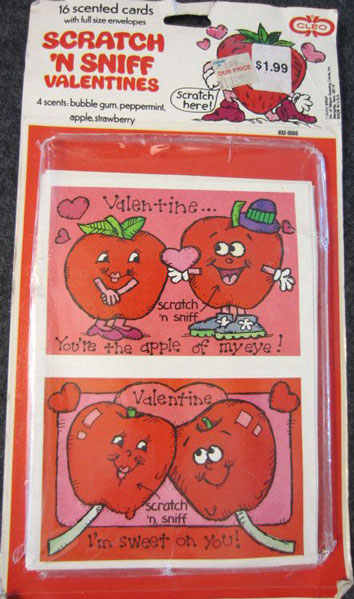Ones that I never had to give out but loved receiving were the Scratch N' Sniff Valentine's cards and stickers.