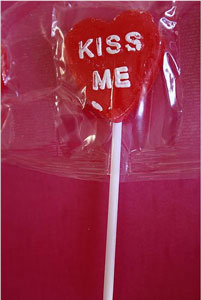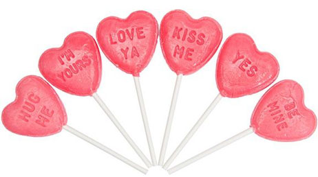 The ones that I remember most were cherry with white frosted writing on them. They came individually wrapped but uncut in a long roll of lollipops that was perforated, or that you had to cut apart with scissors. These were the ones that me and my brother gave out on our valentines year after year, taping the sticks to the cards.