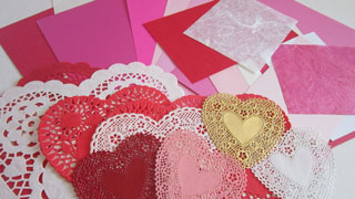 When you got home you would give your parents your Valentine's card you made at school during the party. Using glue sticks, doily die cut paper, embossed paper, construction paper, and tissue paper.