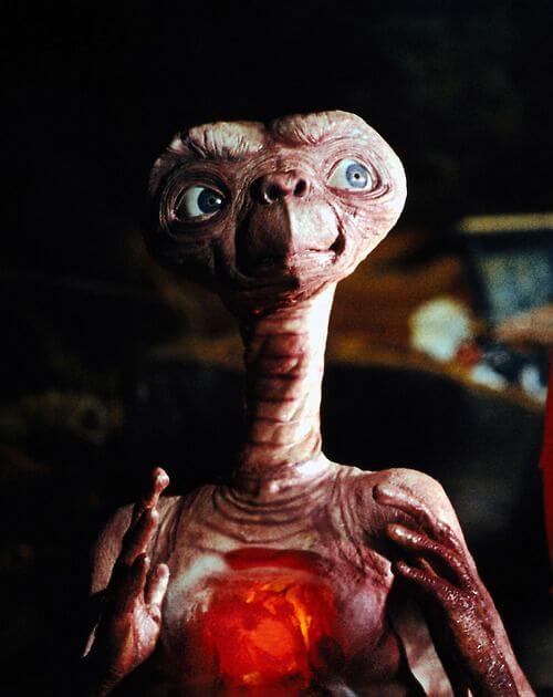 First things first, E.T. is a young alien lost and looking for friends, home, and someone to love him. When he is happy his heart glows.