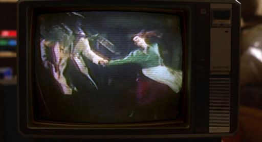 E.T. flipping channels sees John Wayne kiss Maureen O'Hara in the film The Quiet Man being shown on T.V.