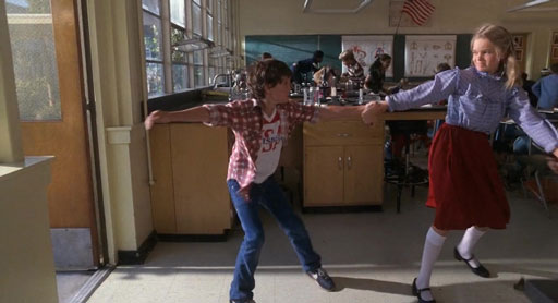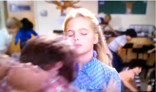 Elliott having a crush on a girl at school grabs her during the pandemonium of him having released all of the frog specimens that were supposed to be dissected.