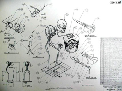 The clothing was made from transparent plastic that fluoresced under a black light. The pale face also fluoresced but vanished when the black light was turned off and the head in the hatbox became visible when a black light was shown through the sheer material of the hatbox.