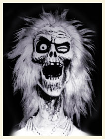 The head of a disenbodied spirit appears in a crystal ball and gives an eerie reading of the future.