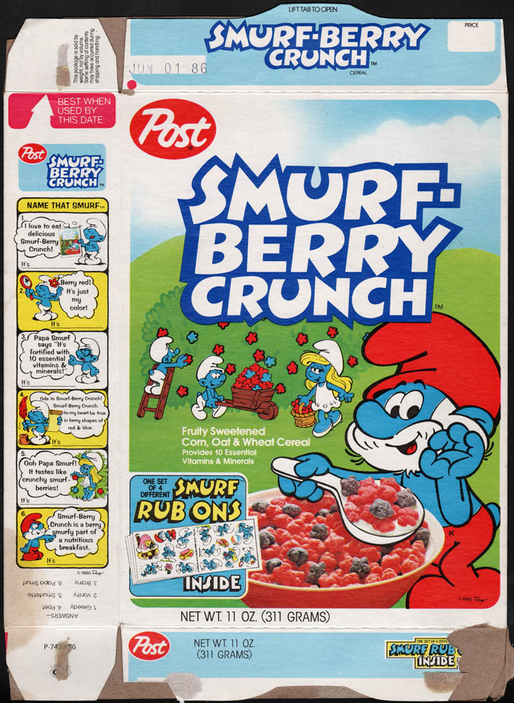1985 - Post - Smurf Berry Crunch - Smurf Rub Ons