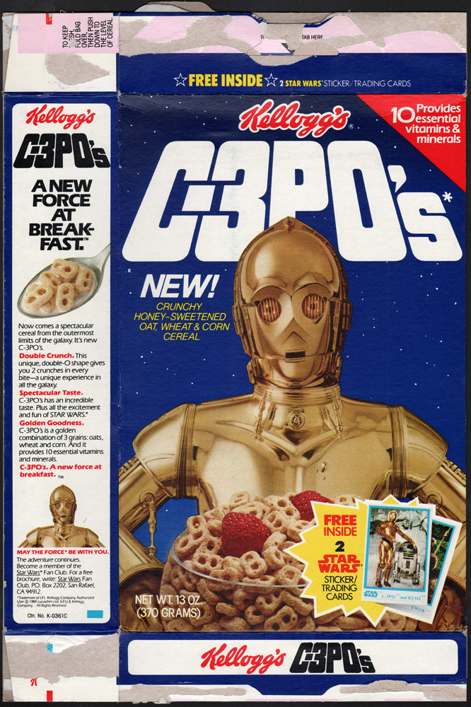 1985 Kelloggs C-3POs cereal box - Free Star Wars Sticker Trading Cards