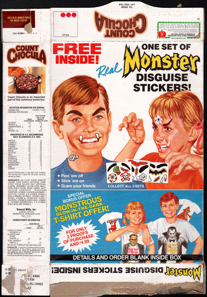 1987 - General Mills - Count Chocula - Bela Lugosi - Free Monster Disguise Stickers
