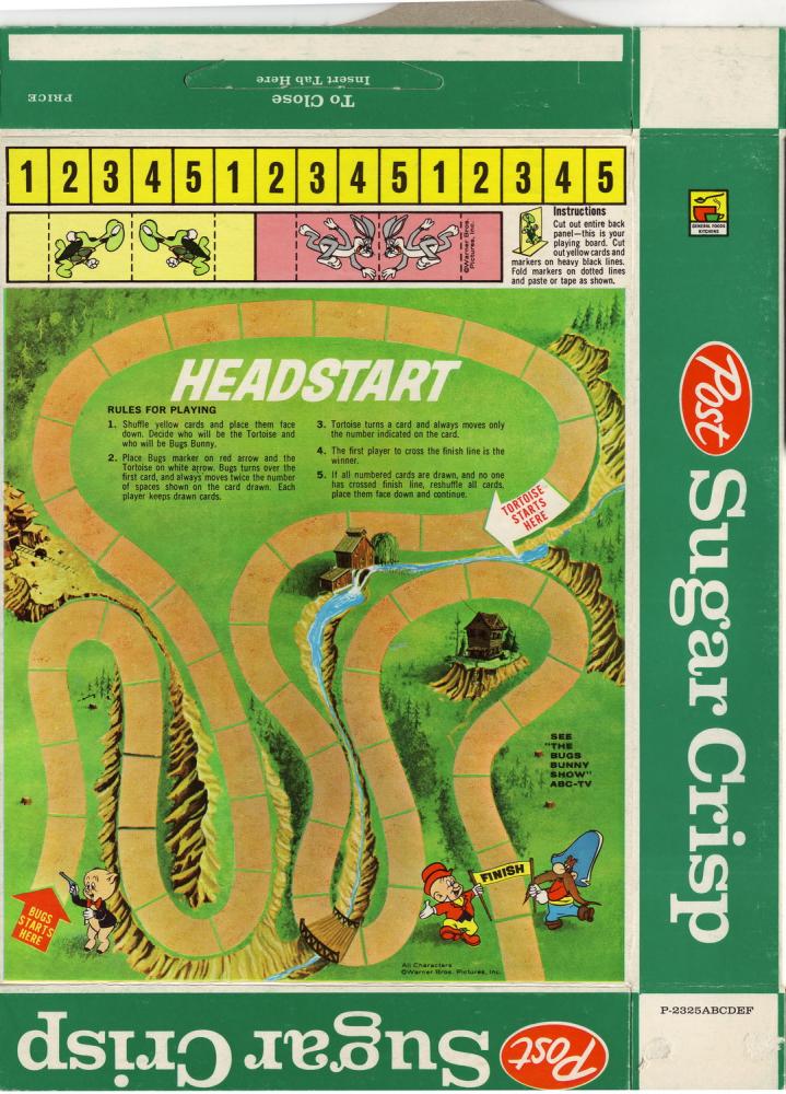 Sugar Crisp cereal box flat - Bugs Bunny Headstart Game - back - 1961_resize