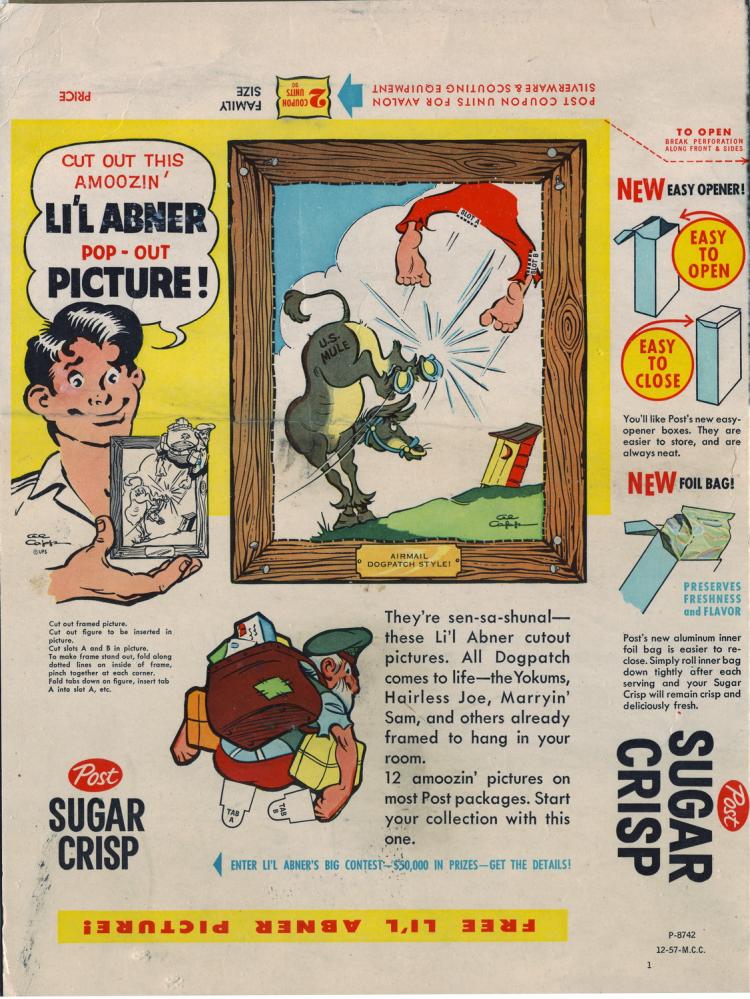 Sugar Crisp cereal box flat - Lil Abner Pop Out Picture - front - 1957_resize