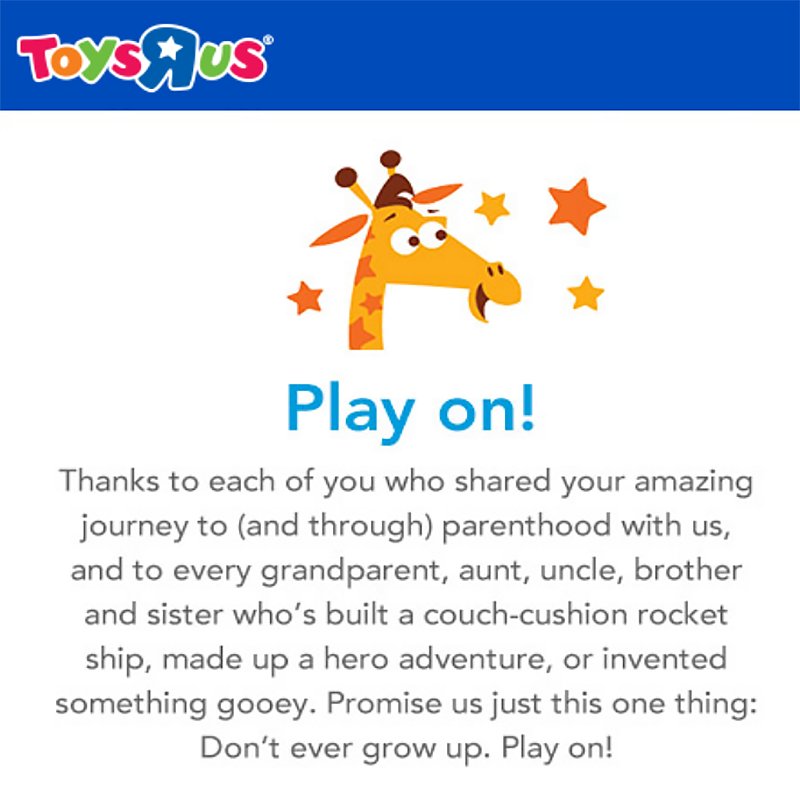 Also, this is what the Toys R Us website now showcases when you visit it. ![]() *Insert funny signature here*