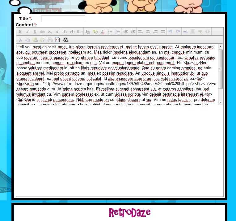 When I did my articles both were that way I just assumed it was the way RetroDaze was. It was hard to see anything at all and I had to use the preview button repeatedly to read what I had written. Only 1/3 of the screen is visible at a time and if you have a picture already inserted you cannot see what you are typing.