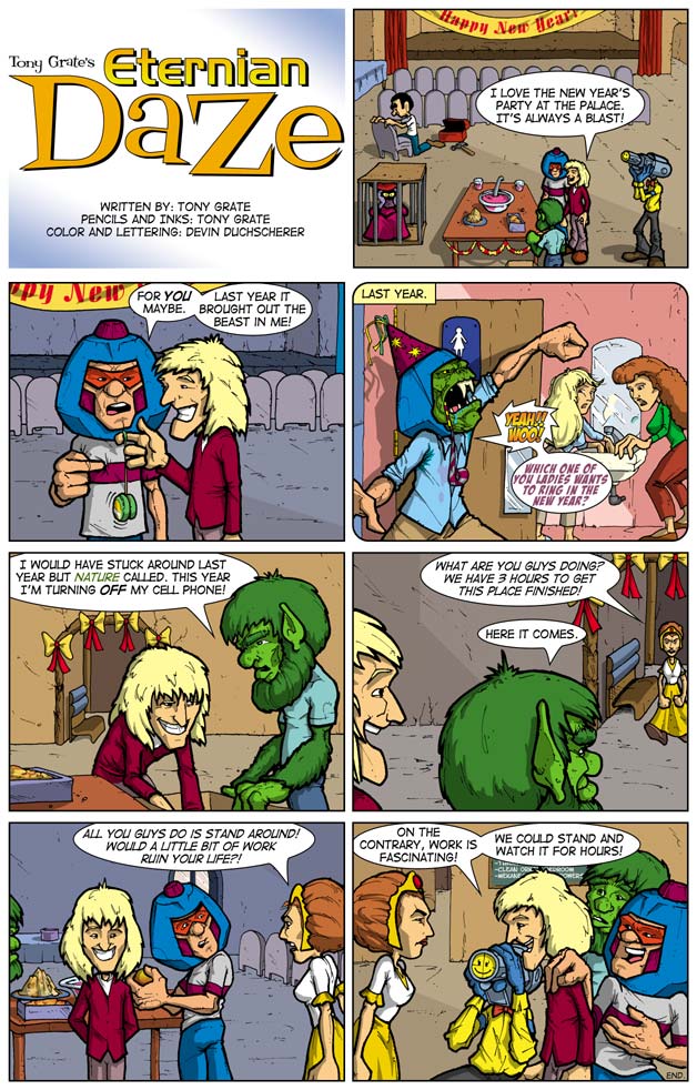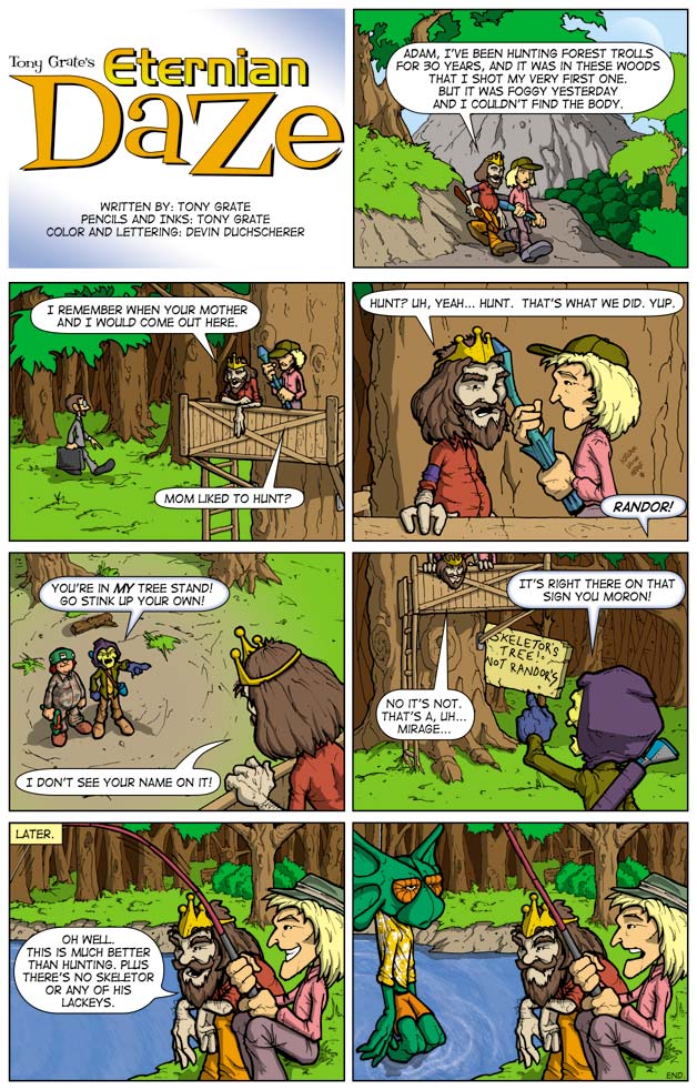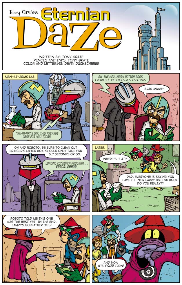 The new addition became known as "Eternian Daze", and was to run indefinitely in in the back of each issue of the ROTSM series. It consisted of a full page comic strip featuring the MOTU characters in more down to earth, comical moments.