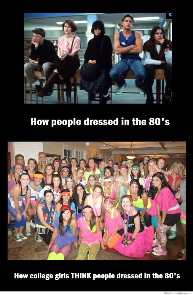 Those college girls' "80s" clothes seem somewhat accurate.